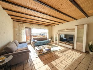 Die Hauptwohnung besteht aus einer geräumigen Küche mit Sitzecke, einem offenen Wohn-Esszimmer mit angeschlossenem Südbalkon und den privaten Räumen betehend aus drei Schlafzimmern, Tageslichbadezimmer und Abstellraum.