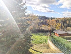 Im Erdgeschoss des Hauses befinden sich ein geräumiger Eingangsbereich, die Küche, Esszimmer mit Zugang zum Wintergarten und dem Balkon. Hier öffnet sich der Blick weit ins Tal und die umliegenden Wälder! Perfekt zum entspannen und genießen.
